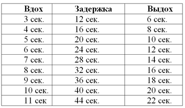 Подберите свой ритм дыхания. К примеру: Вдох 4сек, задержка 16сек и выдох 8 сек (4-16-8). И постепенно увеличивайте это время по схеме 1-4-2. Если вдох 1 сек, то задержка в 4 раза дольше вдоха, а выдох в 2 раза дольше вдоха. Не перенапрягайтесь. Не волнуйтесь если задержка и/или выдох не совпадают. Все придёт постепенно. Не торопитесь.